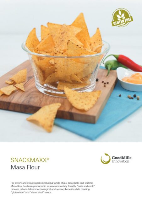 Corn flour used in the production of tortilla chips and taco shells, made from fully matured, gently dried yellow corn.