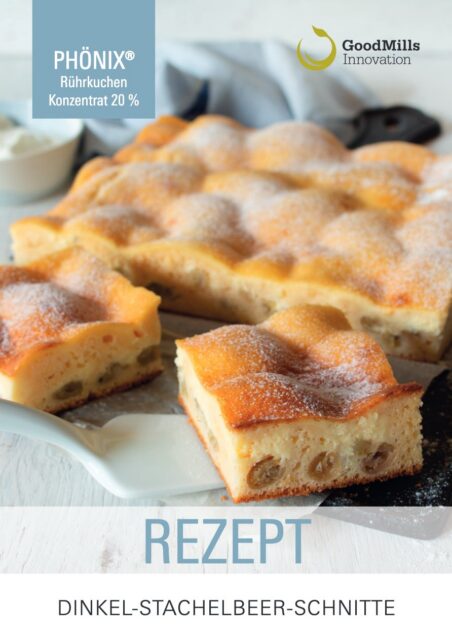 Konzentrat zur Herstellung von Rührmassen für Blechkuchen und Sandkuchen. Die Gebäcke können auf Basis von Weizen, Weizenvollkorn, Dinkel und Dinkelvollkorn hergestellt werden.