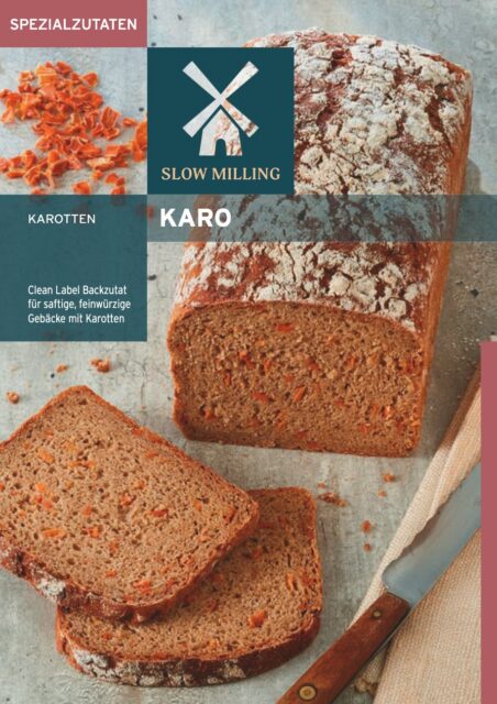 Getrocknete, geschnittene Karotten mit sehr guten Quelleigenschaften. Als Zutat in Teigen, Massen und Füllungen einsetzbar. Trockene Lagerung, Behält die rote Karottenfärbung, Ansprechendes Erscheinungsbild der Krume. Dosierung: 1 – 5 % auf Getreideerzeugnisse